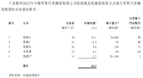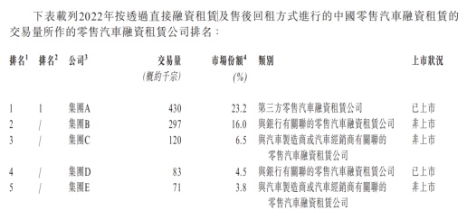 需要注意的是,根据灼识咨询报告,中国零售汽车融资租赁行业相对集中。截至2022年,中国零售汽车融资租赁市场的前二十大公司市场份额约为81.1%,其中前5大公司的市场份额高达54%。