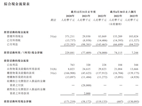 2020年,公司经营活动所得现金净额一度达到2.3亿元。随后两年,经营活动现金净额均处于净流出状态。2023年上半年,公司经营活动所得现金净额也仅有724.4万元。其主要原因之一是公司营运所得现金波动幅度较大,2021年,公司营运所得现金一度下滑至2993万元,同比减少超过90%。另一方面,公司还需负担大额的利息支出,2022年,公司已付利息达到1.43亿元。