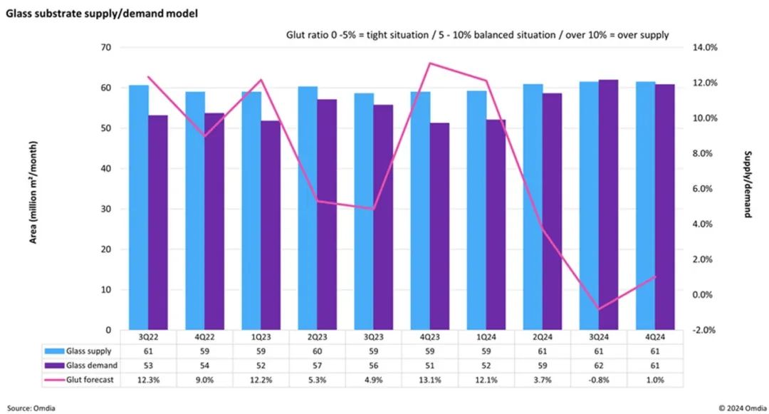 智通财经APP获悉,根据Omdia最新发布的《显示玻璃基板市场追踪报告》,预计2024年第二季度至第四季度供需将趋于平衡,若发生轻微事故或订单激增,玻璃供应可能会出现严重短缺。短缺问题预计将推动玻璃价格上涨,反映出不断变化的显示玻璃市场形势。