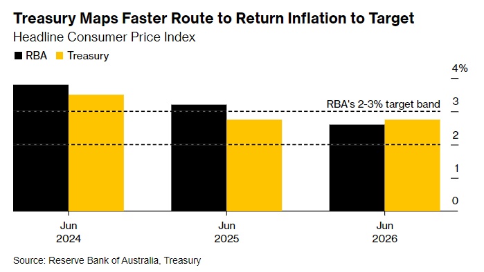 根据上周日发布的一份声明,澳大利亚财政部对2024/25财年的通胀预期仍为2.75%,但它现在预计,到2025年年初,通胀率将降至澳洲联储2%至3%的目标区间内。