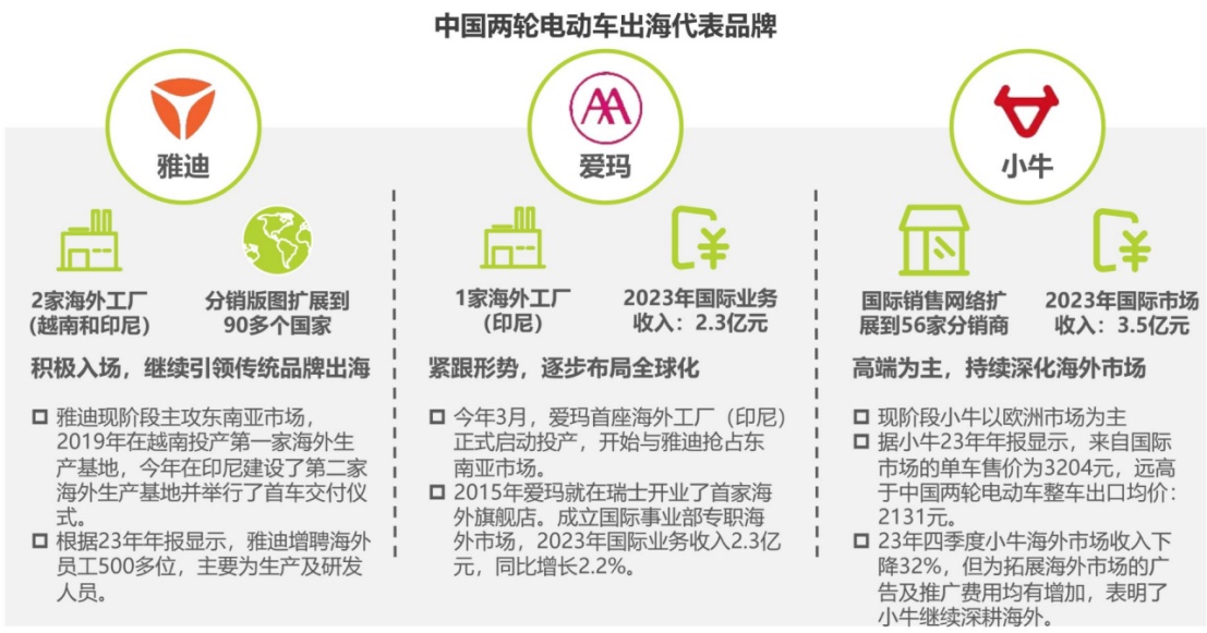 以2023年海外市场收入来看,小牛以3.5亿元收入超过竞品且其来自国际市场的单车售价为3204元,远高于中国两轮电动车2131元的整车出口均价。