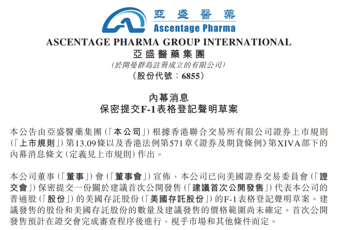 在官宣与武田制药合作的同时,亚盛医药还宣布其已向美国证券交易委员会保密提交一份关于建议首次公开发售代表公司的普通股的美国存托股份的F-1表格登记声明草案,赴美上市在即。