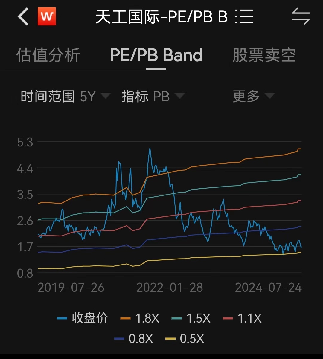 图:天工国际近5年的PB估值(来源wind)