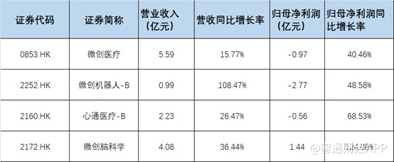 近年来,微创系多家公司登录资本市场。然而从上半年业绩来看,在港股上市的微创系业绩增速普遍不错,但其他都处于亏损状态,仅微创脑科学(02172)一家盈利。