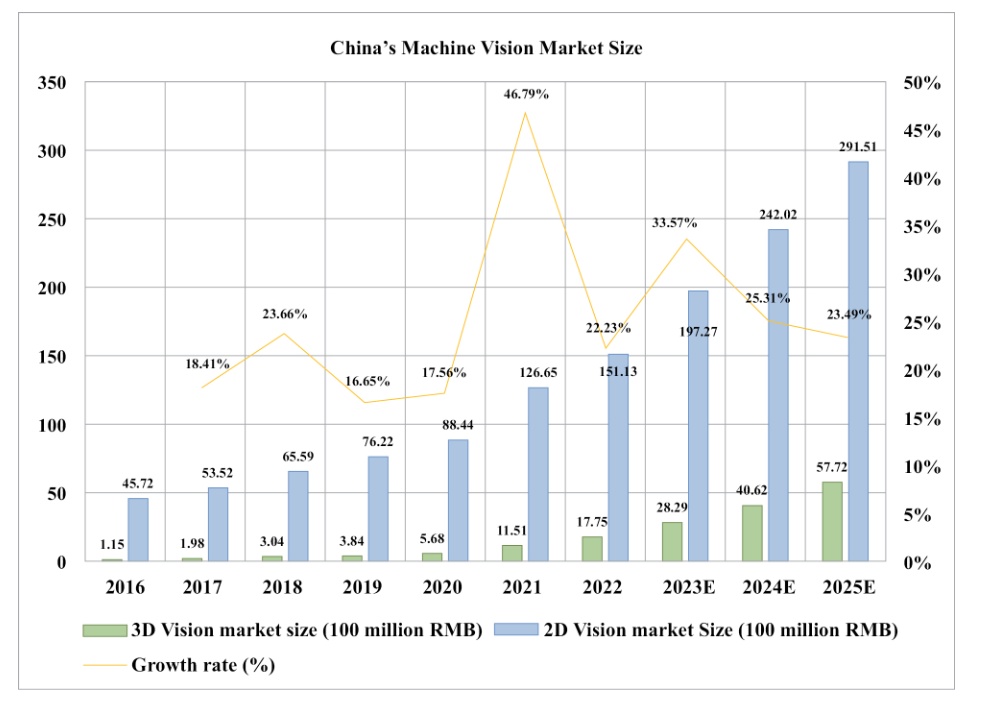 Moore预计,2024、2025年我国机器视觉市场的收入增速分别为25.31%、23.49%,继续保持快速成长,至2025年时的市场规模将达到349亿元,其中二维视觉市场预计将超过292亿元,三维视觉市场预计将超过58亿元。可以确定的是,行业的快速成长将让索威尔从中获益。