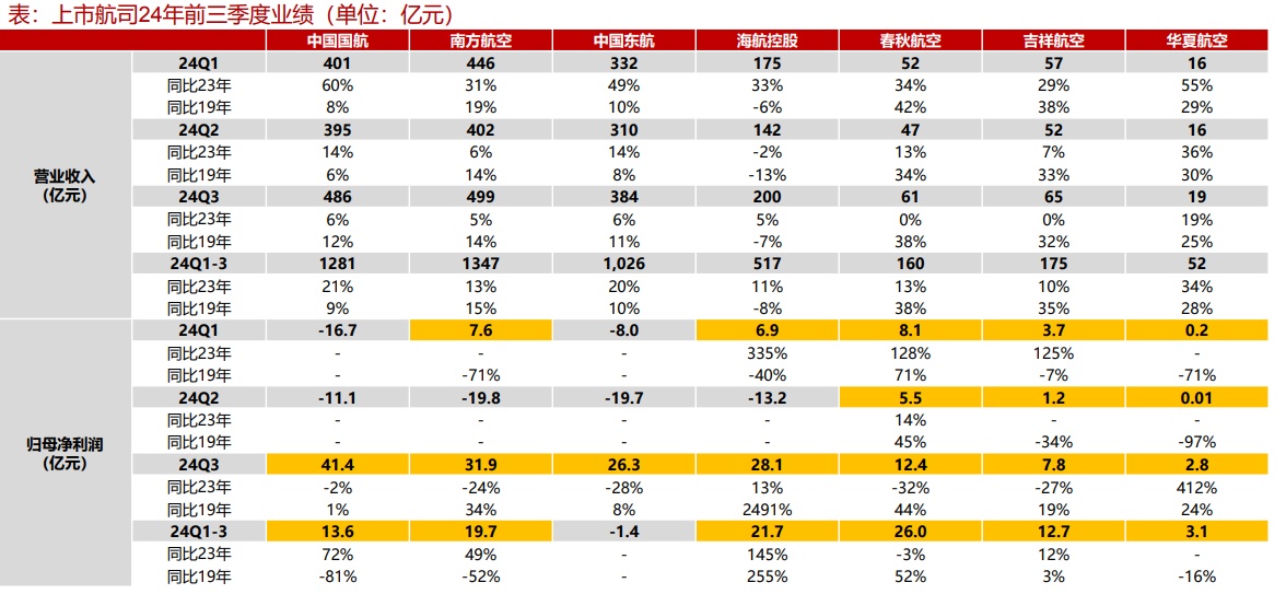 拆分来看,收入端:暑运旺季量增价减,单位RPK收入在2023年高基数上回落,航司营业收入同比略增。成本端:油价略降+利用率持续恢复,摊薄单位成本。利润端:量增价减侵蚀部分利润,航司Q3业绩在23年高基数上下降,但超过2019年同期。