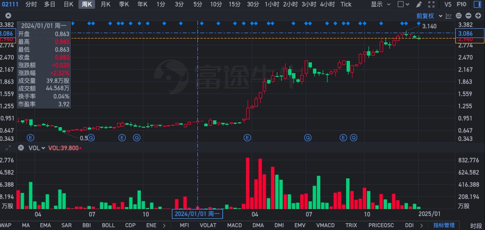 “小而美”的超盈国际控股(02111)走出独立行情。2024年全年,该股涨幅超253%。