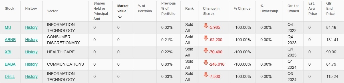 景林资产选择押注中概股的同时,完全清仓了阿里巴巴(BABA.US),该公司曾是景林资产的重要持仓之一,但在四季度,该机构选择彻底退出。该机构去年四季度还清仓了爱彼迎(ABNB.US)、美光科技(MU.US)、标普生物科技ETF(XBI.US)和戴尔科技(DELL.US)。