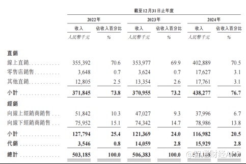 销售渠道方面,公司大部分收入来源于国内第三方电商平台的线上直销,2022-2024年在线直销(主要来自天猫、京东、抖音等旗舰店)分别占总收入的70.6%、69.9%及70.5%,叠加在线经销商销售,在线渠道收入占同期总收入的80.9%、79.2%及77.2%。同时,公司也在拓展线下渠道,截至2024年12月31日,共经营9家直营店,还有54家授权线下经销商运营68家门店。