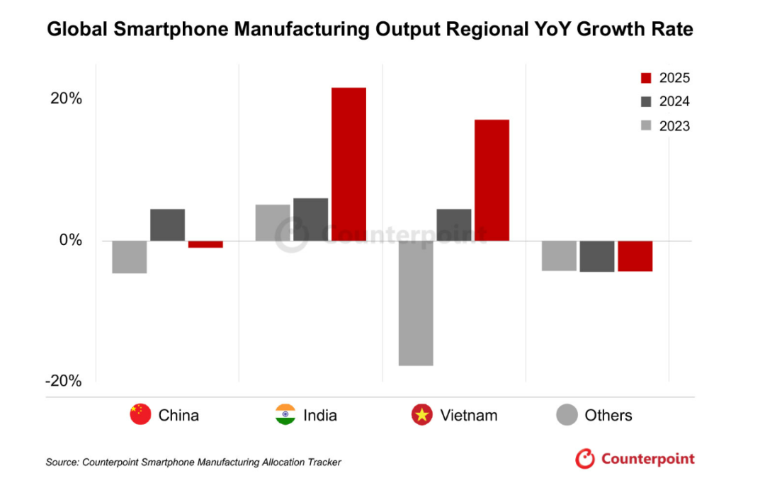 数据来源:Counterpoint Research《全球智能手机制造分布追踪报告》