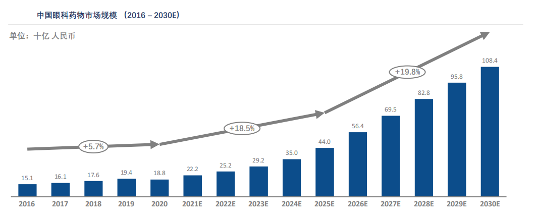 在五官科及心脑血管急救等领域,远大医药同样展现出不俗的发展潜力,蓬勃市场也为公司的布局打开了广阔的发展空间。以临床开发仍有巨大空间眼科市场为例,据弗若斯特沙利文预测,中国眼科药物市场规模预计2025年将达到440亿元,2030年将达到1,166亿元。