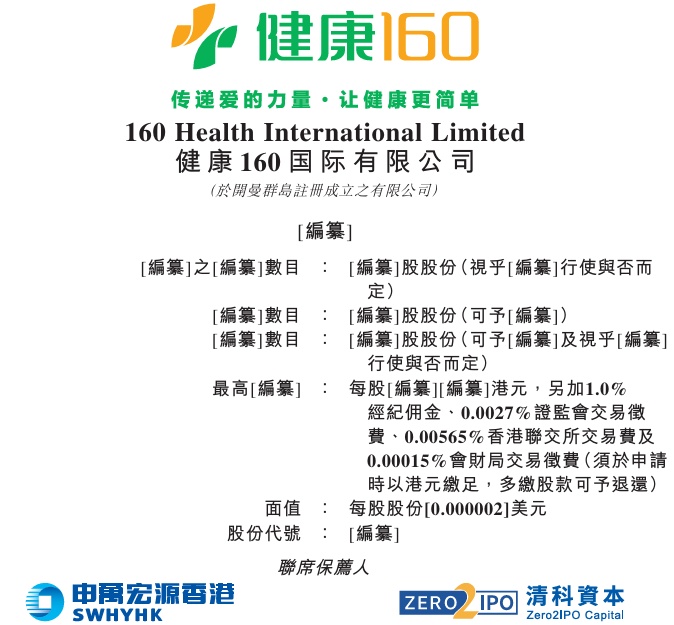 智通财经APP获悉,据港交所9月4日披露,健康160国际有限公司(以下简称:健康160)通过港交所主板上市聆讯,申万宏源香港、清科资本为其联席保荐人。