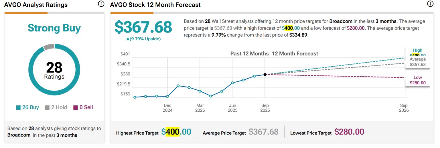 在华尔街,鉴于博通以太网交换机芯片以及AI ASIC芯片需求持续狂飙式增长,华尔街金融大鳄们普遍看涨博通股价前景,看好博通继续上演股价屡创新高之势,因此在博通公布业绩之后普遍大幅上调对于该公司未来12个月的目标股价,Susquehanna、Bernstein、KeyBanc以及巴克莱对于博通的目标股价已经大幅上调至400美元。截至周五美股收盘,博通收涨近10%至334.89美元。