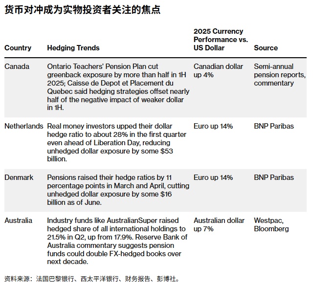 当然,并非所有基金经理都大规模对冲。台北中信投资固定收益主管张瑞安表示,其主动管理固定收益产品未增加货币风险或美国国债收益率对冲头寸,因预期美联储渐进降息下美元大幅下跌概率低。尽管对冲活动有回升迹象,但对许多投资者而言,这一过程需数年完成。不过,加拿大、欧洲、澳大利亚的养老金机构已释放增加对冲的信号。阿姆斯特丹Palinuro Capital首席投资官阿尔方索·佩卡蒂耶洛指出:“随着投资委员会研究并批准对冲计划,此类情况将增多。”