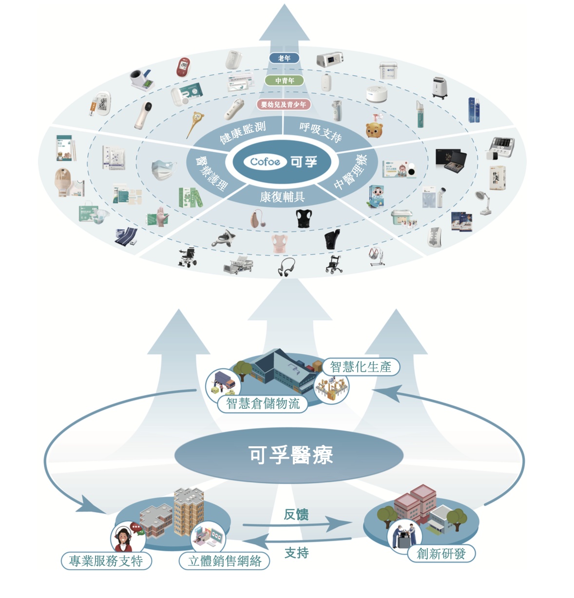 按销售分部划分,公司业务可分为销售医疗健康类产品、定制生产及其他业务三大类。其中,医疗健康类产品贡献约九成营收,可进一步细分为康复辅具、医疗护理、健康监测、呼吸支持及中医理疗等五大品类。