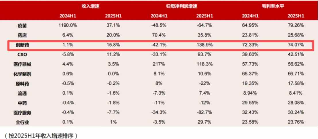 据西南证券统计,2025年上半年,149家港股医药企业当期收入总额达8961.2亿元(+1%),归母净利润619.9亿元(+29.7%),而其中36家创新药企业同期实现收入285亿元,同比增长15.8%,显著跑赢全行业;且板块归母净利润从2024年的亏损状态跃升至18亿元,出现明显的基本面改善拐点。