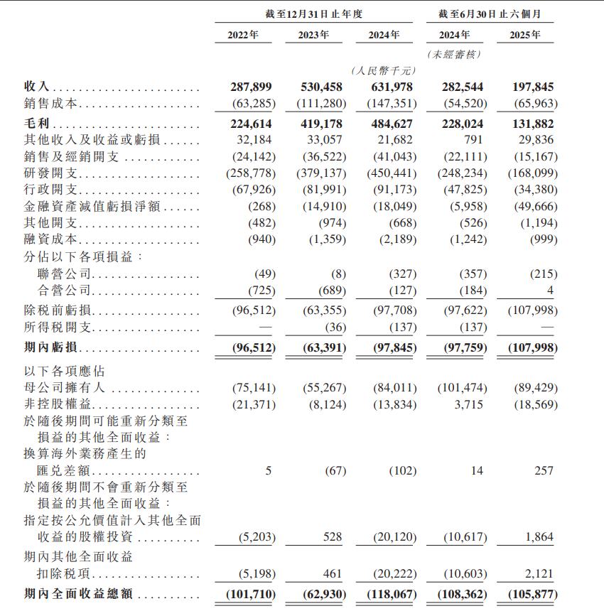财务方面,于2022年度、2023年度、2024年度、2024年及2025年截至6月30日止六个月,迅策科技实现收入分别为约2.88亿元、5.30亿元、6.32亿元、2.83亿元、1.98亿元人民币;同期,期内亏损分别为9651.2万元、6339.1万元、9784.5万元、9775.9万元、约1.08亿元人民币。
