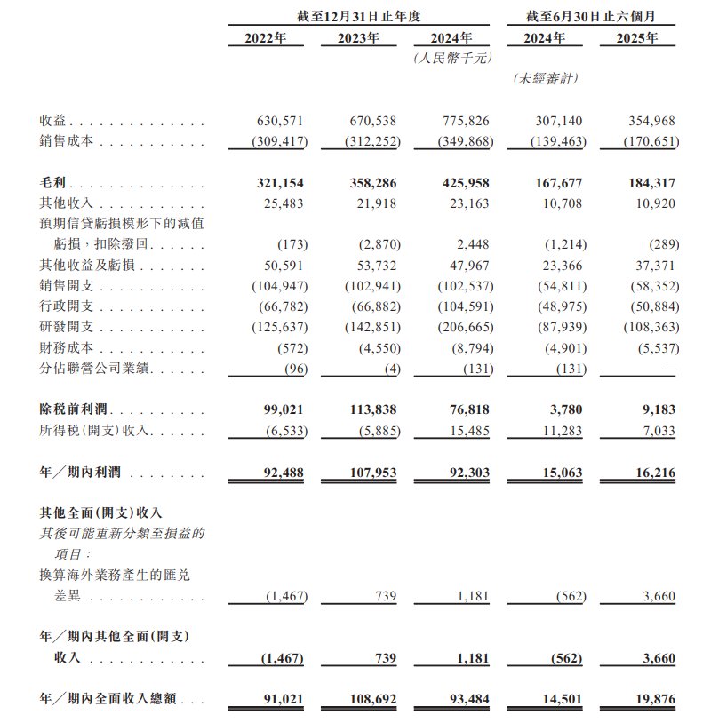 财务方面,于2022年度、2023年度、2024年度、2024年及2025年截至6月30日止六个月,普源精电实现收益分别为约6.31亿元、6.71亿元、7.76亿元、3.07亿元、3.55亿元人民币;同期,年/期内利润分别为9248.8万元、约1.08亿元、9230.3万元、1506.3万元、1621.6万元人民币。