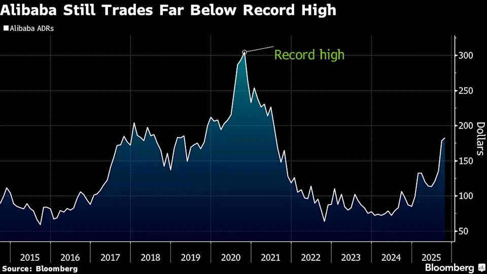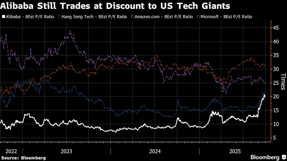 近期推动股价上涨的一个重要因素在于该公司对于在人工智能业务方面的重大投入。阿里首席执行官吴泳铭上周表示,阿里巴巴计划在未来三年内将此前预计的 530 亿美元人工智能预算进一步增加,但他并未给出更具体的数据。同样地,包括 Meta (META.US)、微软、Alphabet (GOOGL.US)和亚马逊的四家美国大型超大规模企业预计今年将投入超过 3440 亿美元,其中很大一部分资金将用于AI数据中心建设;这四家公司整体的市值今年已增加了接近2万亿美元。