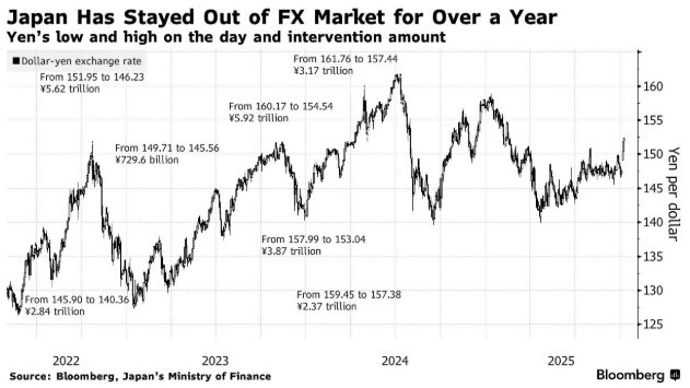 伽马资产管理公司(Gama Asset Management SA)全球宏观投资组合经理拉吉夫·德梅洛指出,“日本财务省与日本央行不愿看到日元大幅贬值,而当前汇率重回150-160区间,这一水平会让他们感到不安。”“日方很可能先通过‘口头干预’释放信号,但若日元贬值趋势持续,实际干预行动或许很快就会跟进。”