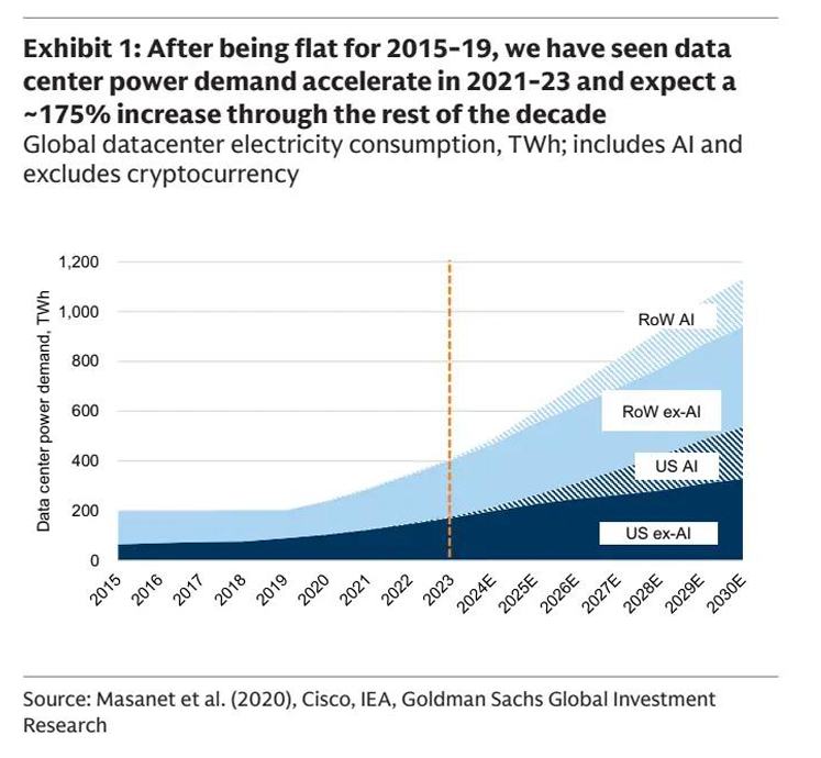 智通财经APP获悉,华尔街金融巨头高盛在最新研究报告中将全球数据中心(含AI+非AI,AI带动的增长占据主导地位)所驱动的截至2030年庞大耗电需求到预测,上修为较2023年耗电量大幅扩张175%(高盛的先前为+165%),相当于再增加一个“全球前十耗电大国”的电力资源负荷。在高盛分析师团队看来,AI大模型的尽头就是电力——该机构强调堪称“吞电巨兽”的AI将带来史无前例的电力股“超级牛市行情”,在具体投资策略上,高盛建议基于“6P”围绕“可靠性—可获得性—效率”三条投资主线。