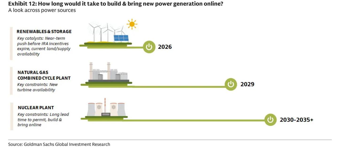 此外,高盛还表示,随着IRA(通胀削减法案)到期,短期不改电网容量建设节奏,全美电力行业仍然有抢装/抢并网趋势以锁定激励,许可/选址才是关键非价格约束。