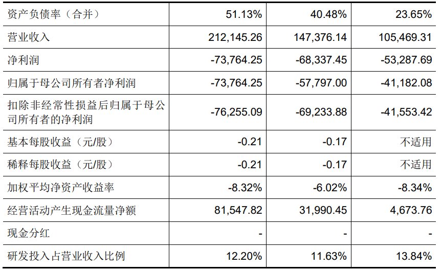 财务方面,于2022年度、2023年度、2024年度,公司实现营业收入分别约为10.55亿元、14.74亿元、21.21亿元,同期实现净利润分别约为-5.33亿元、-6.83亿元、-7.38亿元人民币。