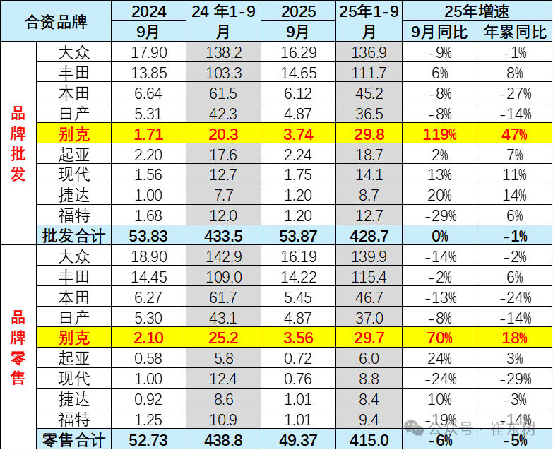 智通财经APP获悉,崔东树发文称,由于国家以旧换新加大补贴政策启动推动了2024年9月的乘用车销量高增长,因此今年9月的国内车市增长压力较大,但随着新能源车高增长和别克等主流品牌的恢复增长,9月车市增长超预期。过去三年的新能源乘用车市场持续增长且渗透率不断攀升,主流合资品牌面临挑战,而今年别克却实现了同比增长,成为推动9月车市超预期增长的一股重要力量。这一现象体现了中国消费的多元性,以旧换新政策引导消费升级,别克等主力品牌及时调整市场策略,顺势发展,实现了昂科威等主力车型的高增长。