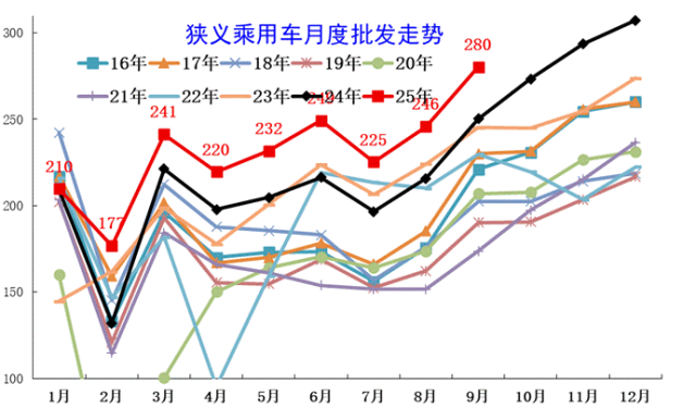 今年9月全国乘用车厂商批发280万辆,创当月历史新高,且较6月高点249万台增长31万台,走势也是超强。