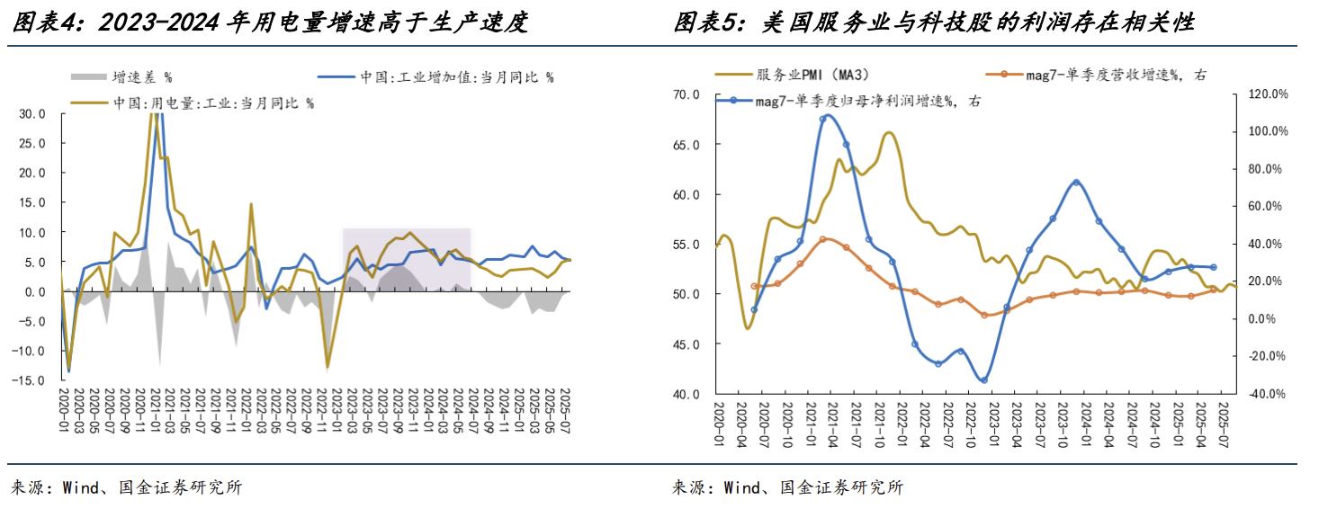 全球市场来看,反而呈现出另一种场景:美国作为服务业主导的经济体,过去两年在“服务业强、制造业弱”的分化格局下,由于美国科技公司利润与服务业景气存在高度关联性(美国服务业其实是科技公司的利润),叠加美国科技公司自身产业层面的技术突破,多重因素叠加共同驱动美国科技公司的利润持续不断增长。这一趋势也逐步传导至A股市场,当国内经济正处于资源和制造放缓之后需求偏弱的阶段,海外科技映射之下,A股的泛科技领域与海外科技股展现出了高度的联动性并在此期间也获得显著的超额收益。