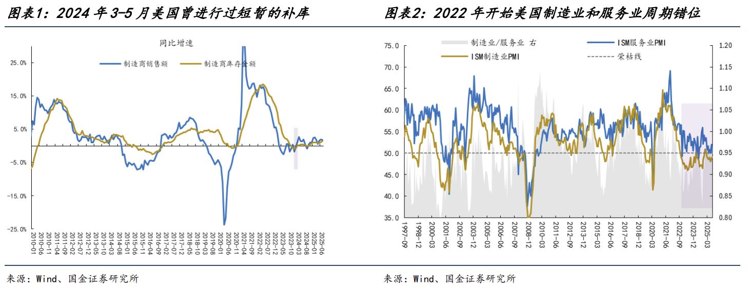 策略团队:从库存周期来看,2024年3-5月美国曾出现过一轮补库行情。尽管尚未传导至上游资源品,但由于以铜为代表的工业金属兼具工业属性和金融属性,对下游商品补库信号较为敏感,上游资源品价格在此期间也出现了明显上涨。但是,无论是持续性还是弹性来看,这一轮美国补库整体偏弱(2024年6月开始美国制造商库存开始边际走弱),背后的原因在于高利率环境对于制造业的抑制效应。当时美国经济正处于制造业与服务业周期错位之中,即“服务业强、制造业弱”的分化格局,偏强的服务业使得服务通胀持续具备粘性,而利率敏感型的制造业受利率压制而表现疲软,这也导致了商品通胀的回落。但一旦进入补库反弹的周期,便极易引发政策紧缩预期,反而限制了补库的力度。