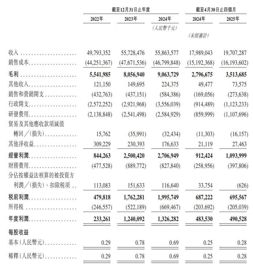 财务方面,于2022年度、2023年度、2024年度、2025年截至4月30日止四个月,均胜电子分别录得收入约为497.93亿元、557.28亿元、558.64亿、197.09亿元人民币,同期利润分别约为2.33亿元、12.40亿元、13.26亿、4.91亿元人民币。
