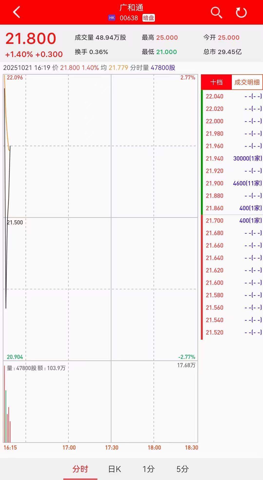 智通财经APP获悉,广和通(00638)将于10月22日(周三)在香港挂牌。截至发稿,利弗莫尔证券暗盘交易显示报价21.80港元,较招股价21.50港元上涨1.40%,每手200股,不计手续费,每手赚60港元。