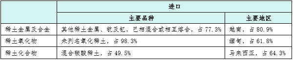 表2 2025年1-9月稀土冶炼产品进口主要品种及地区占比