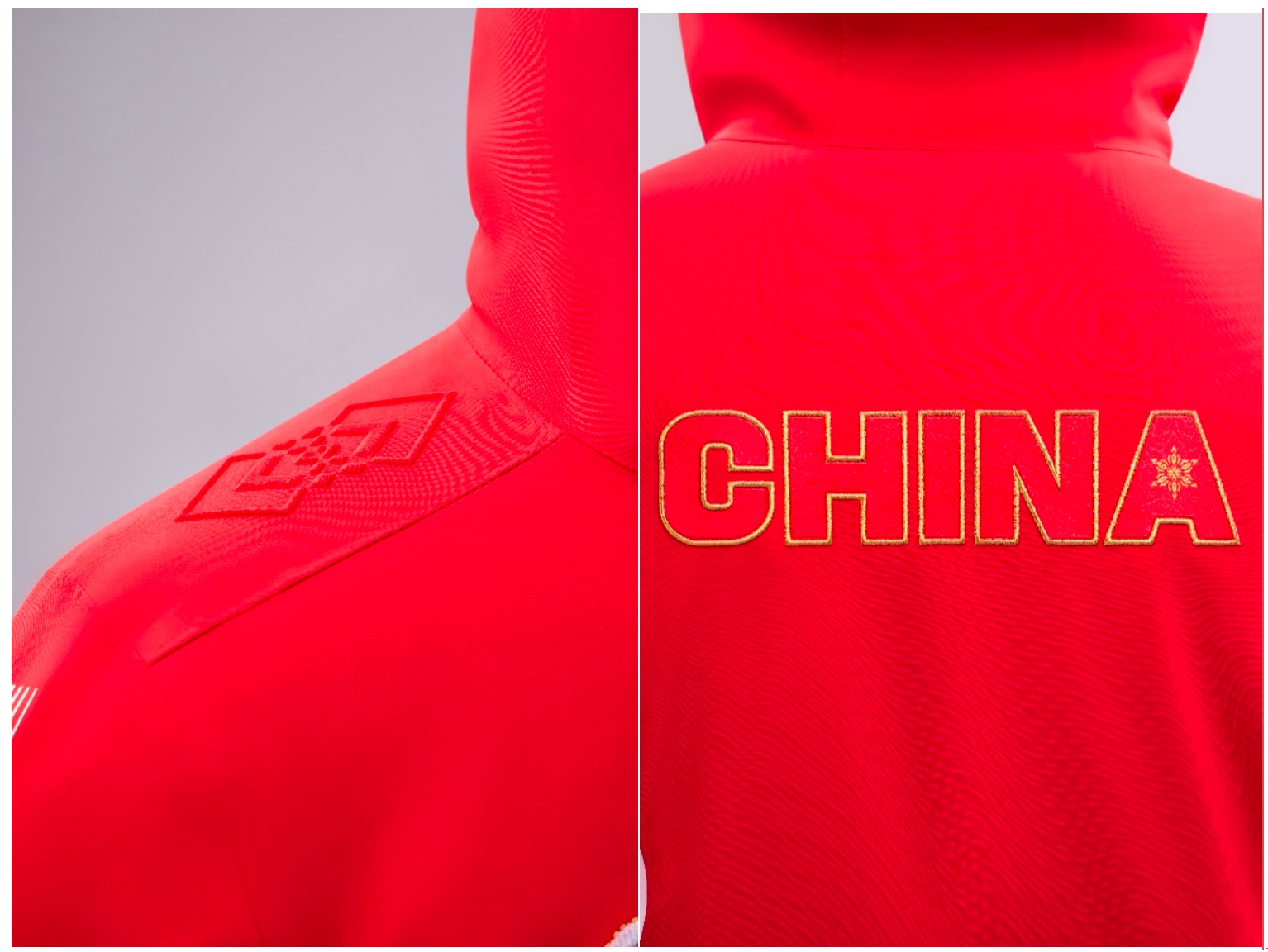 领奖服陪伴运动员登上最高领奖台,是体育精神与竞技实力的展现,同时也向世界展现中华优秀传统文化。2026年米兰冬奥会中国体育代表团领奖服,在肩部、袖口等部位采用了传统吉祥寓意纹样——“双胜纹”,该纹样由两个菱形交叠穿插而成,蕴含着胜利、祥瑞等美好寓意,并在此基础上衍生出“双胜雪花纹”,用于领口和内里玄武岩远红外印花等部位,同时巧妙地融入领奖服背后CHINA字母纹饰,在夜晚光照后CHINA也能清晰可见,以此寄托着对中国冬奥健儿斩获更多胜利的美好祝愿。