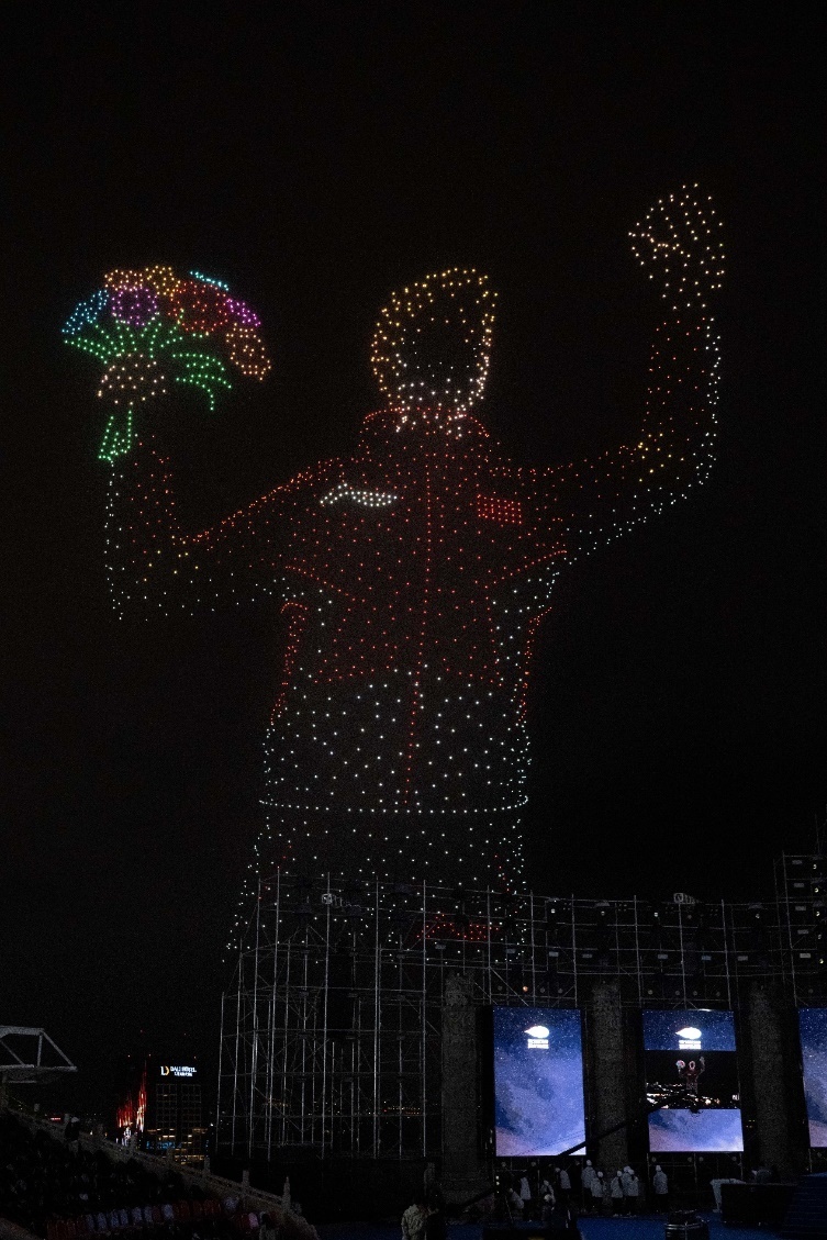 现场的无人机主题秀环节,以动感的无人机表演勾勒出2026年米兰冬奥会中国体育代表团领奖装备的线条,表达出对2026年米兰冬奥会中国体育代表团的美好祝福。