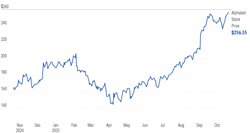 尽管上周五创下新高,但Alphabet 的股价经历了波动的一周。周一,股价一度触及257.33 美元的盘中高点,但在 OpenAI 发布“ChatGPT Atlas”网络浏览器后,周二股价出现下跌,新的人工智能浏览器竞争让市场感到恐慌。受谷歌发布突破性量子计算算法,以及与人工智能初创公司 Anthropic 达成数十亿美元云计算协议、将提供多达 100 万颗谷歌TPU芯片的报道推动,该股在周三和周四反弹。周五,该股再次反弹,盘前上涨超过2%,抹平了周中跌幅。