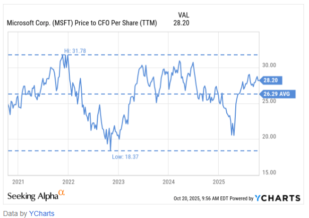 微软2025年至今其股价已上涨近25%,而苹果和亚马逊今年的表现则相对滞后。尽管如此,按其下一财年预期收益计算,其市盈率约为28倍,估值虽不算便宜,但尚属合理,与其五年平均水平基本一致。