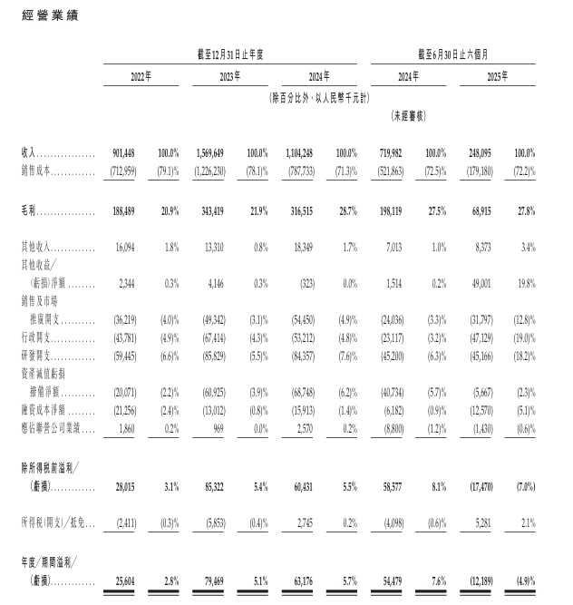 财务方面,于2022年度、2023年度、2024年度及2025年截至6月30日止六个月,罗博特科实现收入分别约为9.01亿元、15.7亿元、11.04亿元、2.48亿元人民币;同期,年度/期内溢利分别约为2560.4万元、7946.9万元、6317.6万元、-1218.9万元人民币。