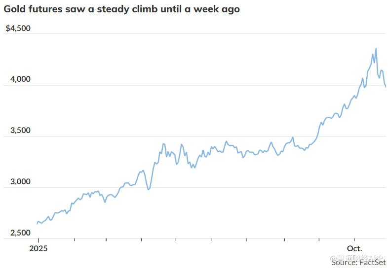 周二,纽约商品交易所最活跃12月黄金期货收于每盎司3983.1美元,日跌0.9%,连续第三日收低。自10月20日创下4359.4美元历史收盘高位后,金价累计回调近9%,但本月至今仍涨近3%,年内涨幅接近51%。道富投资管理贵金属主管Aakash Doshi称,此轮调整属“暂时”,潜在买盘区间预计在3600至3650美元。