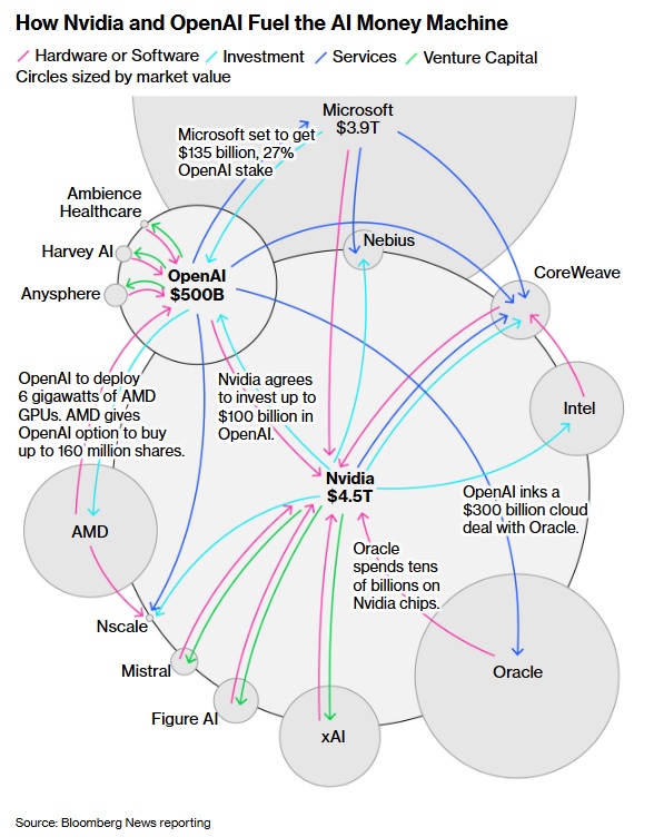 有分析师和学者开始将英伟达近期与诺基亚等客户达成的一系列交叉交易,与1990年代互联网泡沫破裂前的循环交易相提并论。当时,初创公司之间相互销售产品的做法虚增了增长预期。