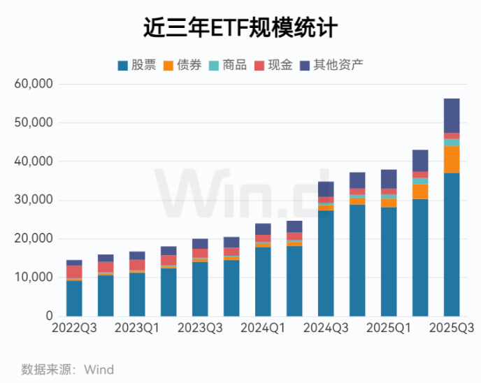 2025年三季度,ETF规模再创新高,达5.63万亿元。
