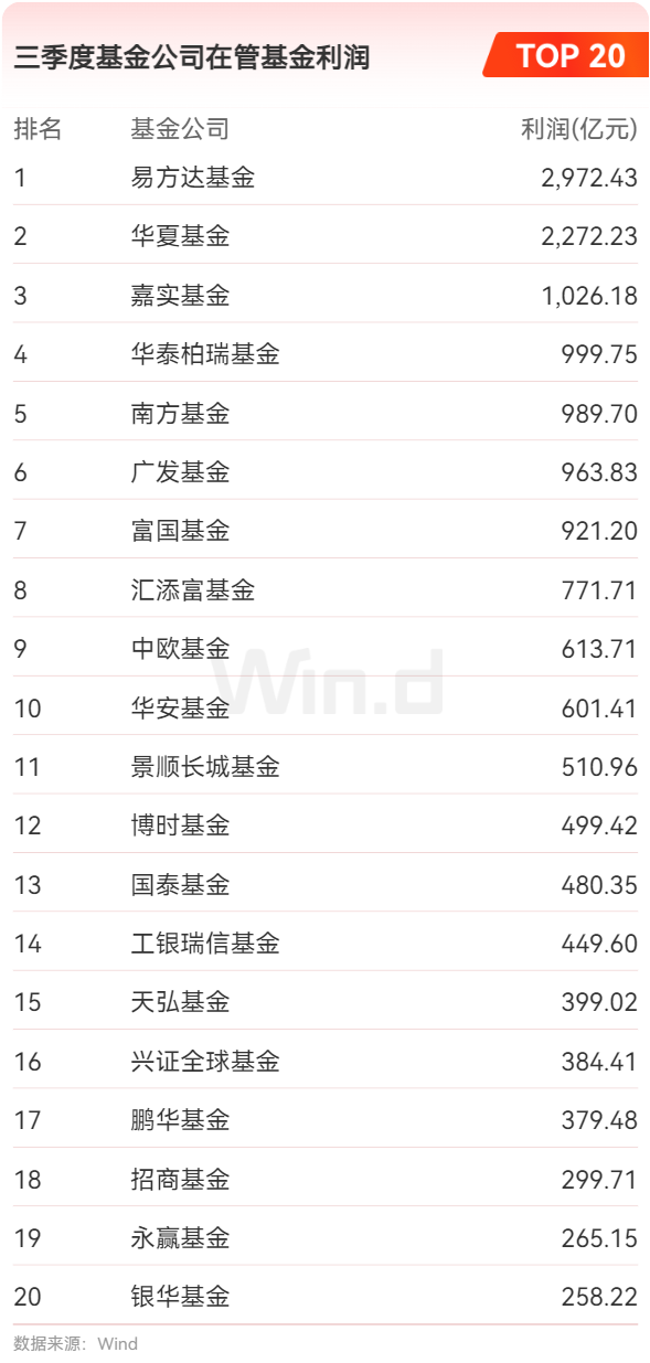 三季度利润排名前10的基金中,大部分都是宽基ETF,利润普遍超过百亿元。
