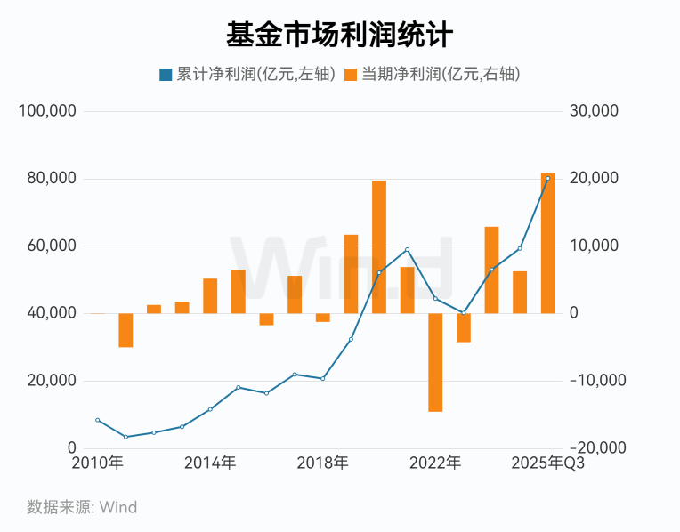 1998年至2025年三季度末,中国公募基金整体为持有人创造了超过8万亿的利润,创历史新高。仅在2025年,公募基金为投资者带来的利润便已突破2.7万亿元,远超历史上任意自然年,彰显出其作为财富管理工具在践行高质量发展中的重要作用。
