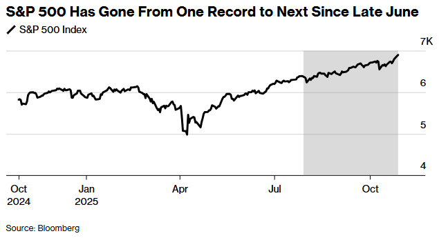 他写道。"鉴于企业盈利韧性、波动性降低以及场外充裕的流动性,市场的最小阻力路径仍然是上行至感恩节——尽管第四季度的涨幅可能比往常来得更早、更强劲。"