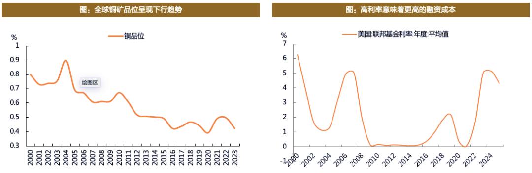 1、新扩建:2015年之后矿端进入防御性资本开支阶段,CAPEX偏保守;低铜矿品位+高融资成本+资源保护主义显著,掣肘供应放量。