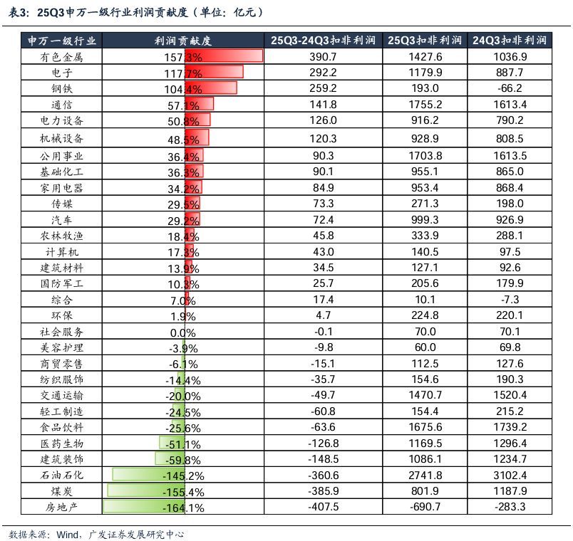 25Q3非金融A股扣非利润同比增长1.2%,同比多增248亿,以下是贡献拆分