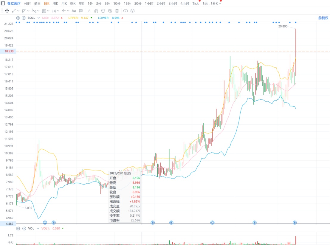 虽然春立医疗股价去年10月累跌13%,但之后的5个月内出现缓慢企稳回升,2024年11月至今年3月,股价走出月度“五连阳”累涨17.73%,但对应每个月成交量却显著降低,期间仅今年2月成交量突破1000万股,最小成交量则跌至493.85万股,反映出场内持筹者对春立医疗后续增长的一致看好态度。