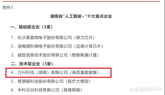 日前,湖南省人民政府印发《湖南省贯彻落实国务院“人工智能+”行动的实施方案》,公布湖南省“人工智能+”十大重点企业、十大示范场景、十大未来场景及十大重点科技创新平台,明确将人工智能作为推进新质生产力、构建智能经济新形态的重要引擎。在湘名企、AIGC软件A股上市公司万兴科技(300624.SZ)凭借在数字创意软件与生成式人工智能领域的技术优势,作为技术层代表企业,入选湖南省“人工智能+”十大重点企业,标志着公司在湖南省人工智能产业生态中的影响力进一步提升。
