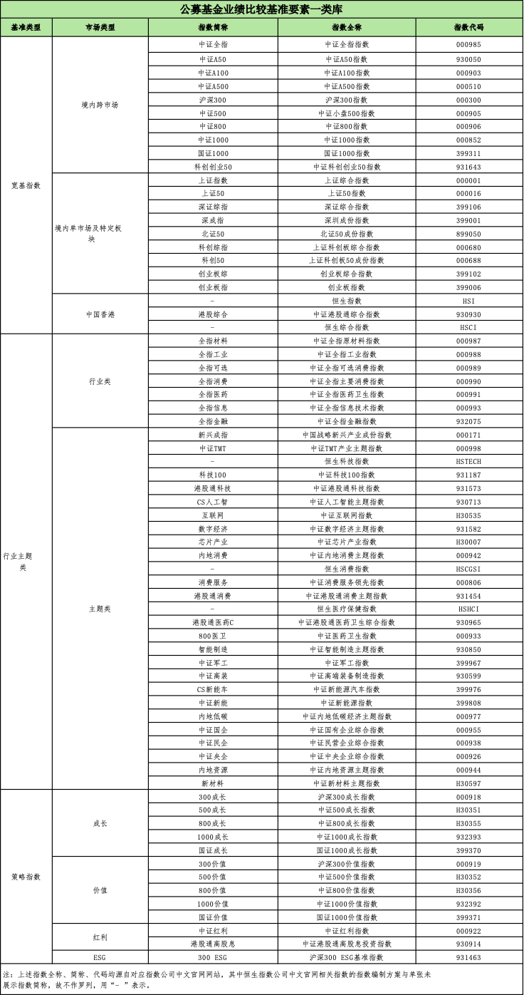 公募基金业绩比较基准征求意见稿公布后,业绩比较基准要素一类库、二类库名录已经下发。